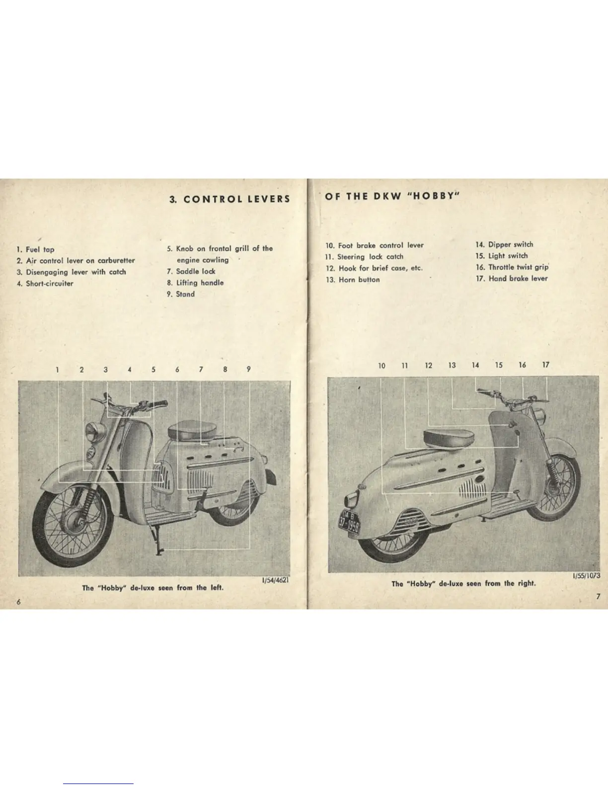 DKW Hobby - Control Levers; Fuel Tap; Air Control Lever; Disengaging Lever