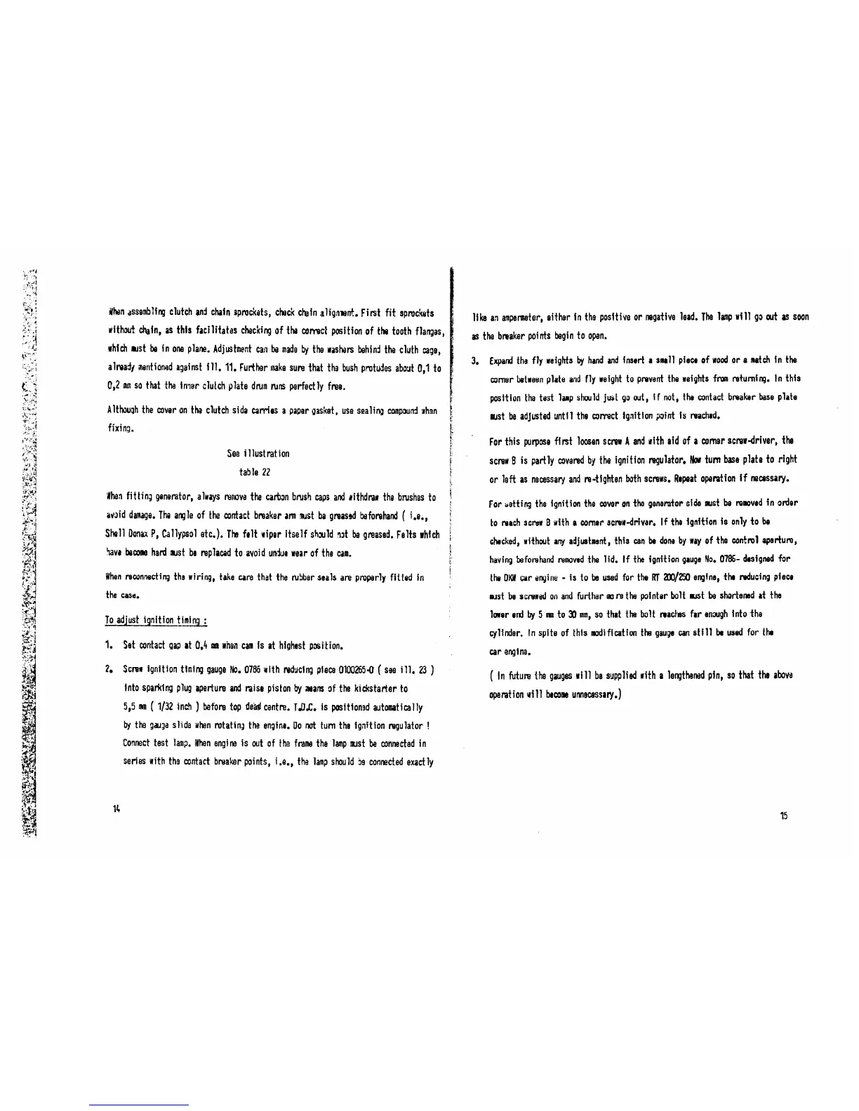 DKW RT 200 - Clutch and Generator Reassembly; Ignition Timing Adjustment Procedure