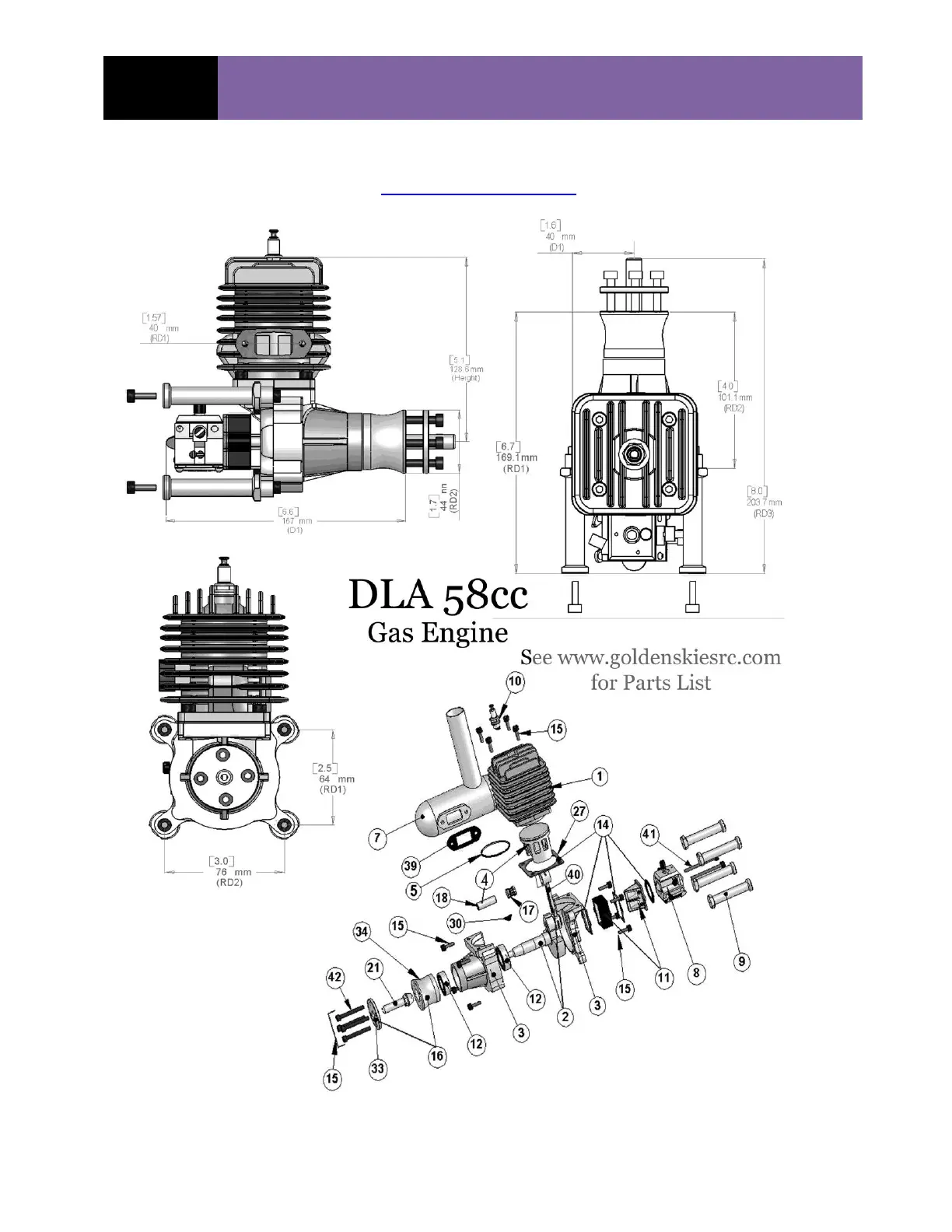 PARTS LIST 58cc: (See www.goldenskiesrc.com for current lists and Prices)
