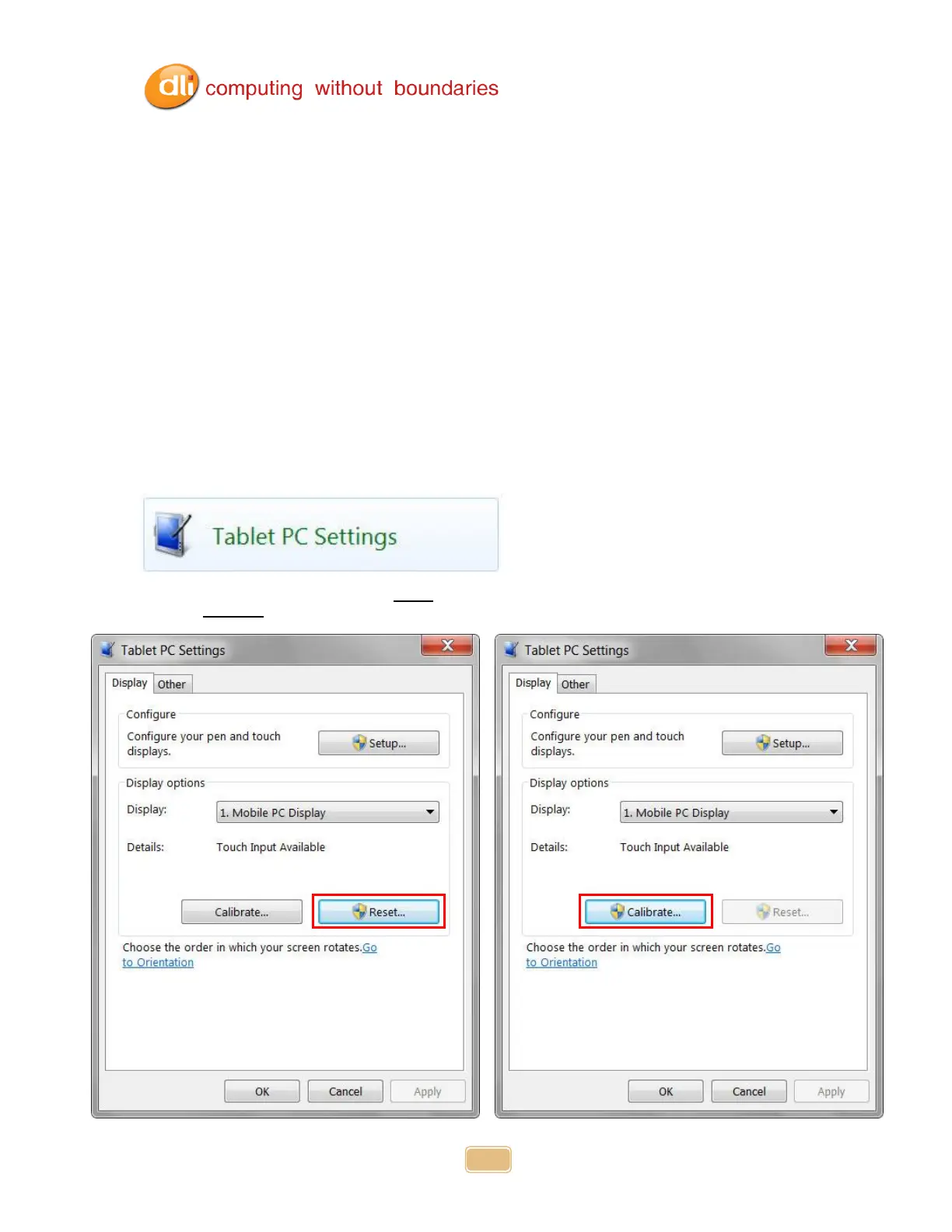 2. It is recommended to select Reset before calibrating the display. Once reset, select