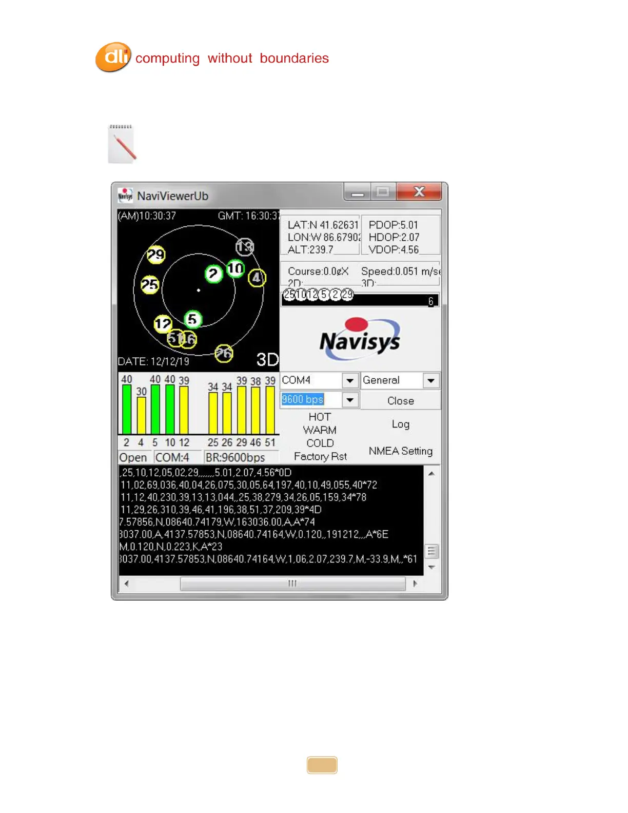 and Altitude. You can also view the Streaming NMEA data. You must be outside a