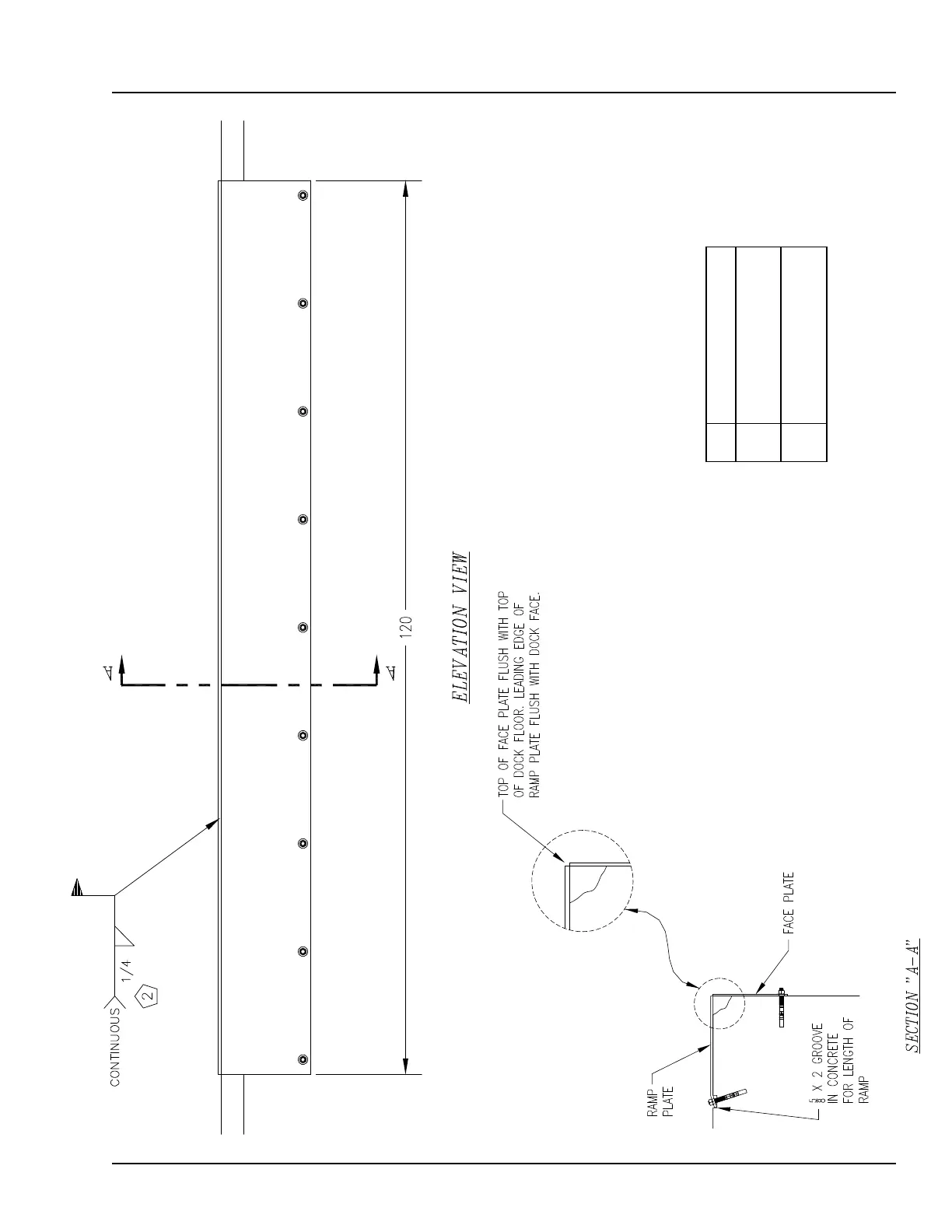 entire length of face plate and ramp