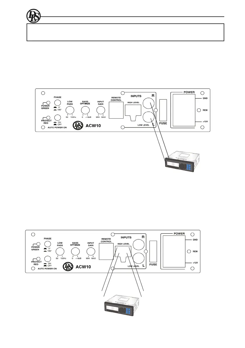 speaker wires coming from the car stereo to the high level input as shown. Be sure