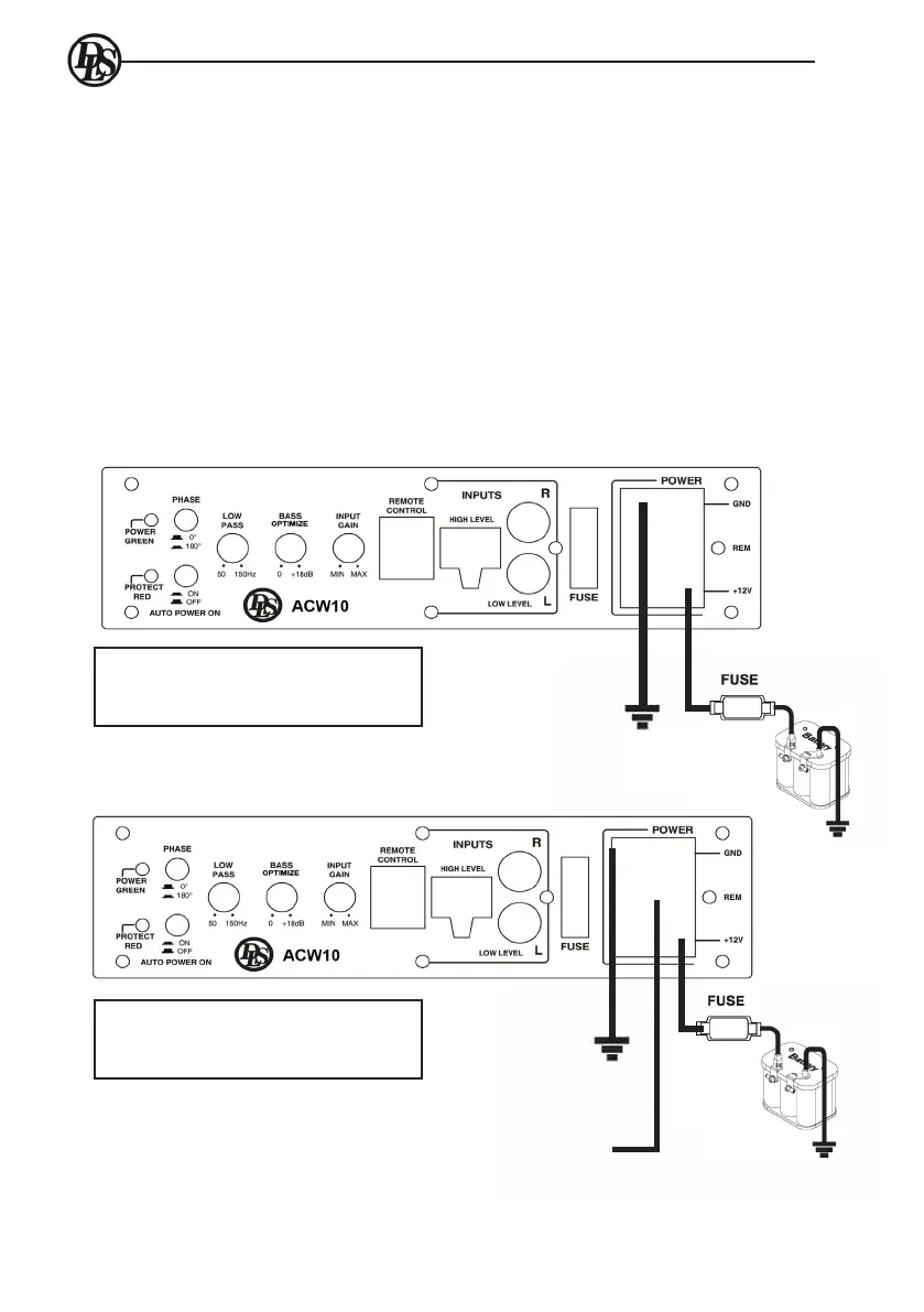 Connect the fuse holder as close to the vehicle battery + as possible and
