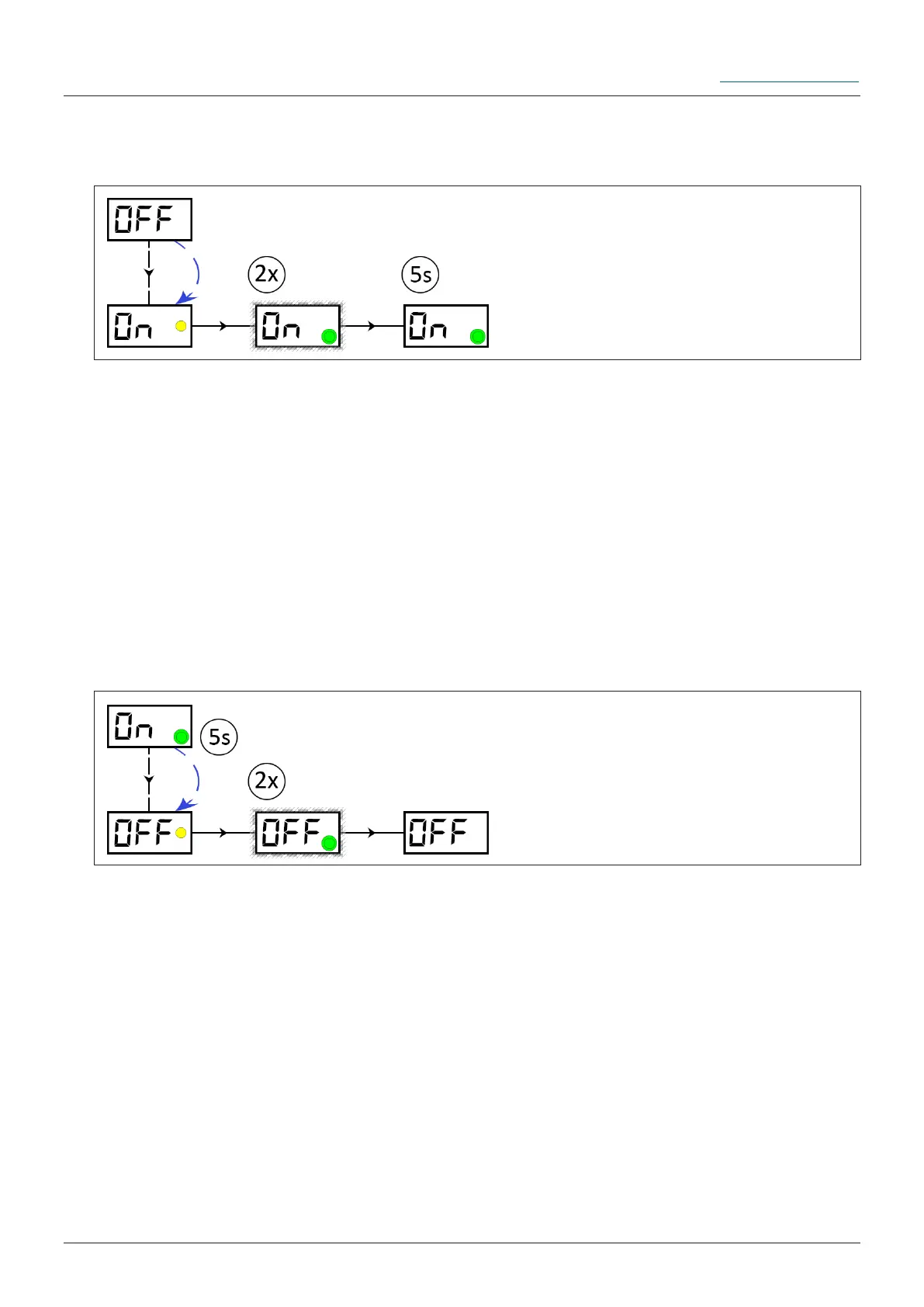 as OFF is displayed in the LCD. The yellow LED disappears; the LCD ashes together