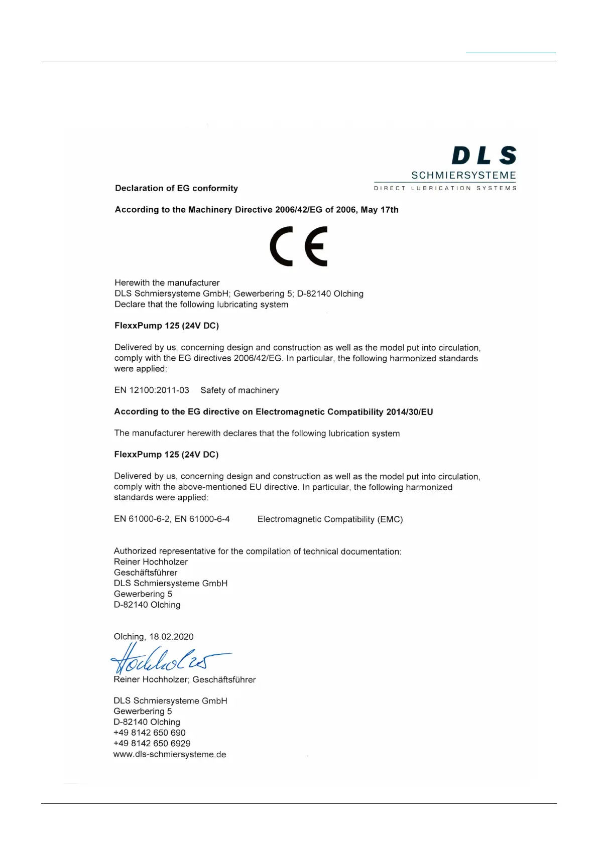 DLS FlexxPump 125 - 11.2 EC;EU Declaration of Conformity