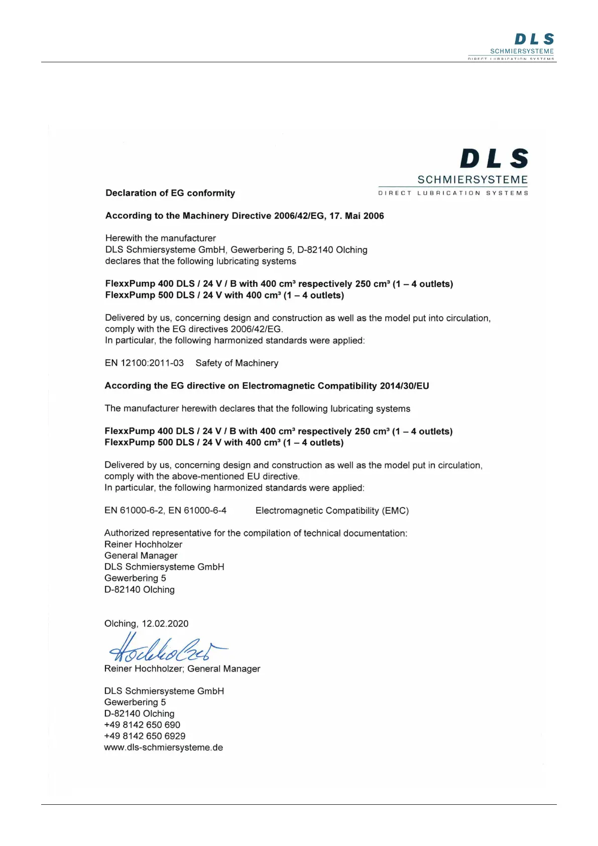 DLS FlexxPump 250 DLS - EC;EU Declaration of conformity