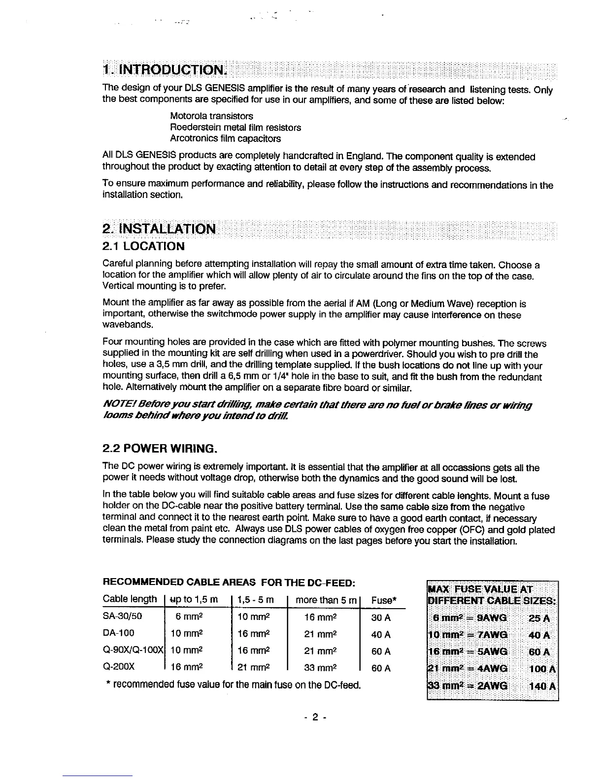 DLS GENESISSER1 - Introduction; Installation; Location; Power Wiring