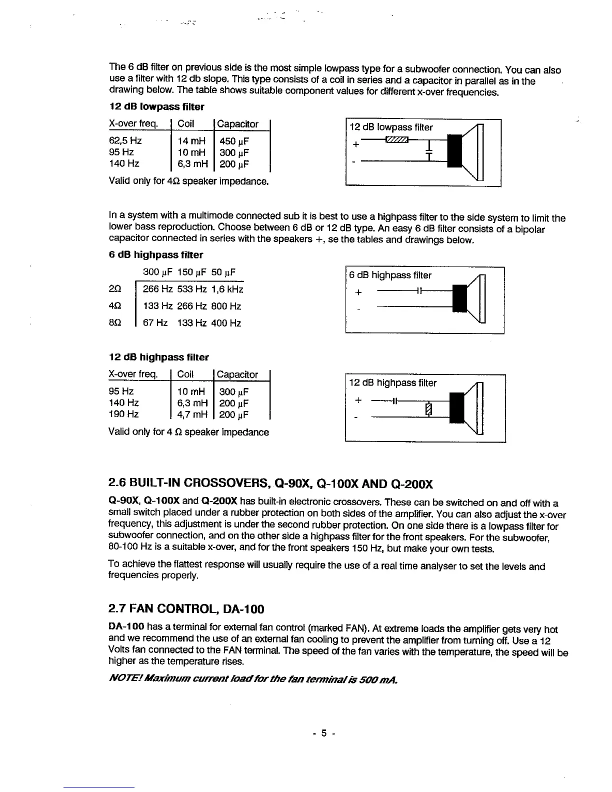 DLS GENESISSER1 - Built-In Crossovers; Fan Control; 12 Db Lowpass Filter; 6 Db Highpass Filter