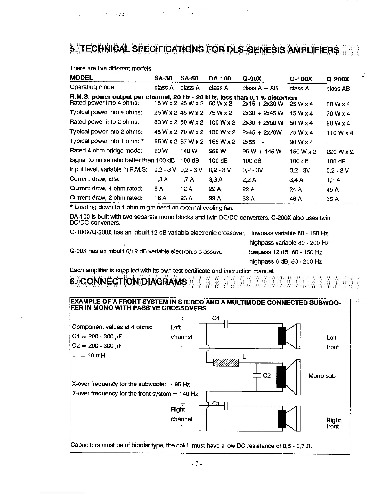 DLS GENESISSER1 - Technical Specifications; Connection Diagrams