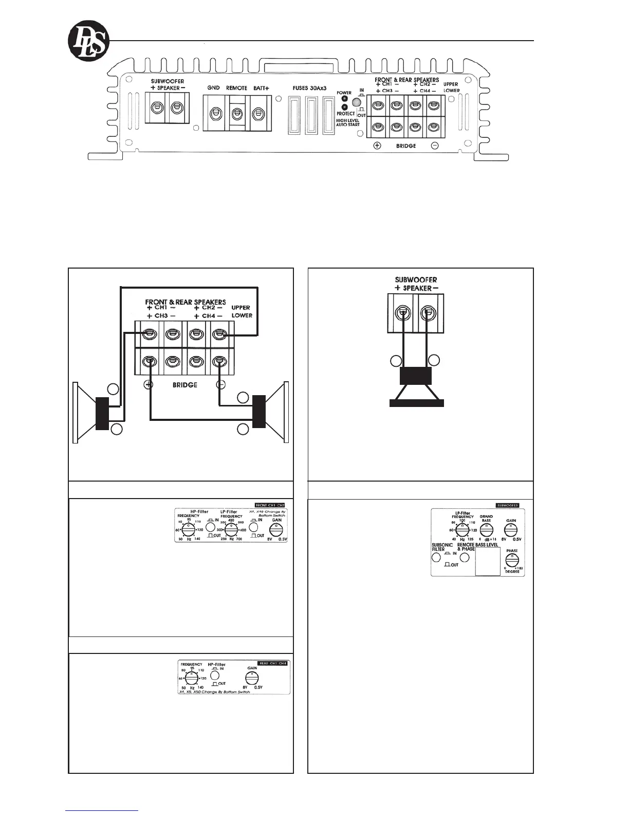 The subwoofer output is 2 ohm stable. Two 4 ohm
