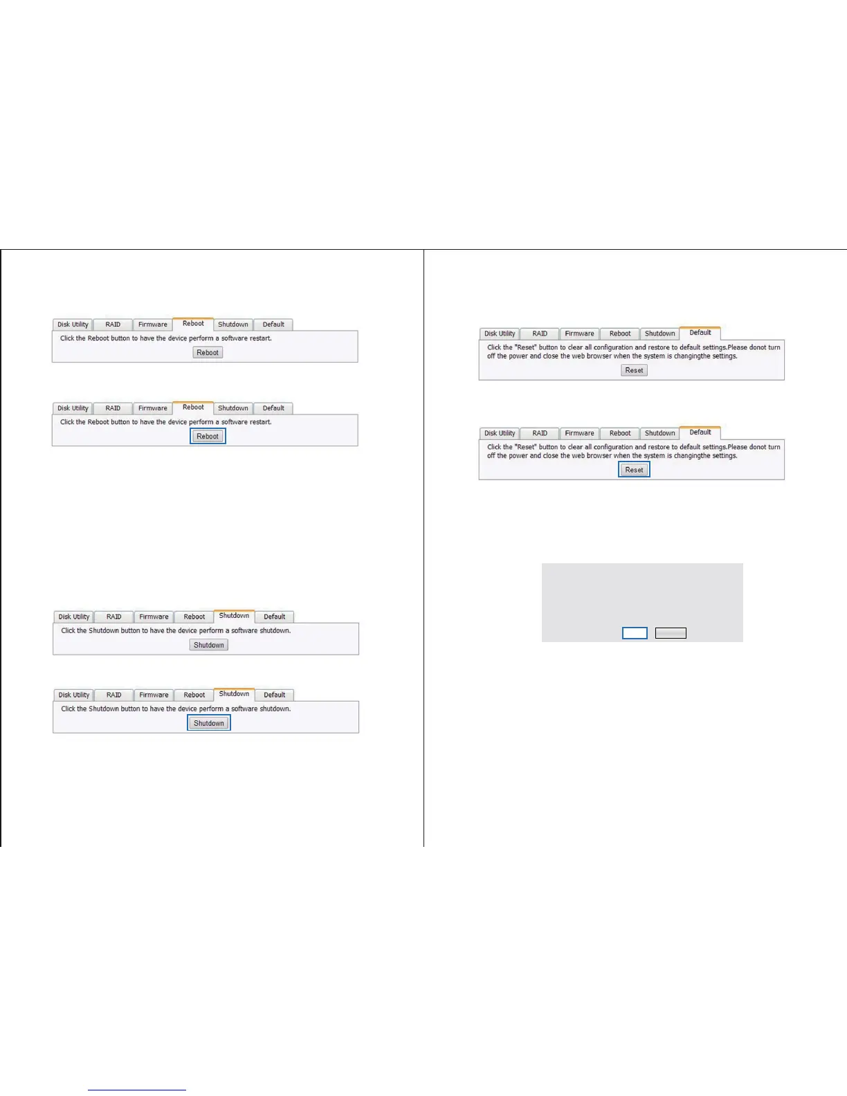 Enables you to restore the enclosure to its default settings (reset) through the web GUI.