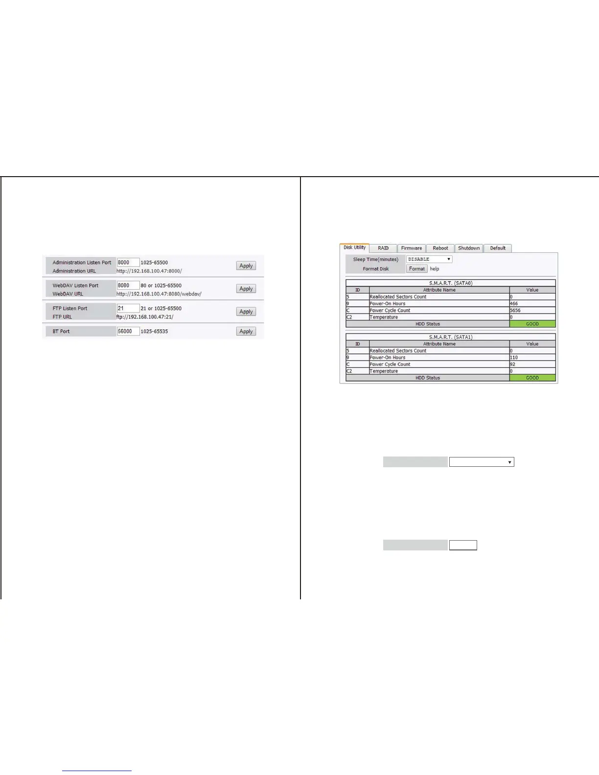 Enables you to set a sleep timer, format your RAID array, and view S.M.A.R.T (Self-
