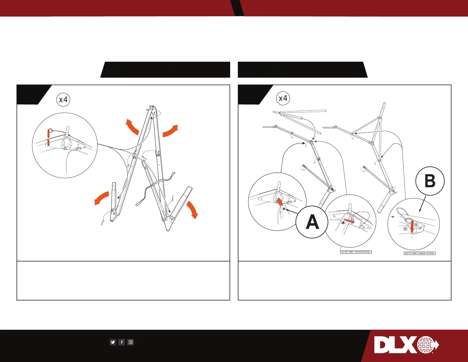 Retrieve arch sections from labeled frame bags. Swing joints and pin