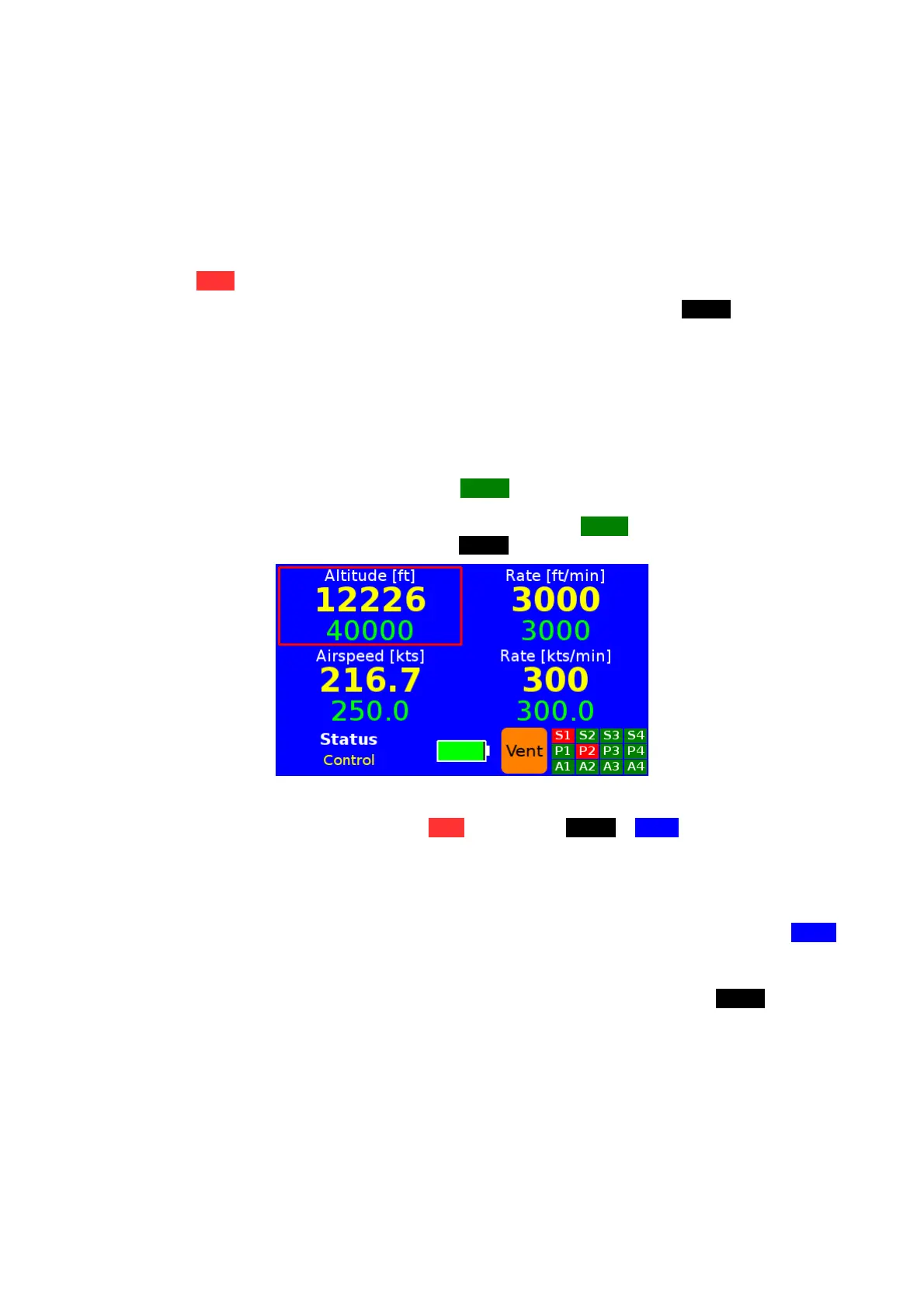 • 1,000 feet (28.856 inHg) at port S1 and 150 knots (29.947 inHg) at port P1;