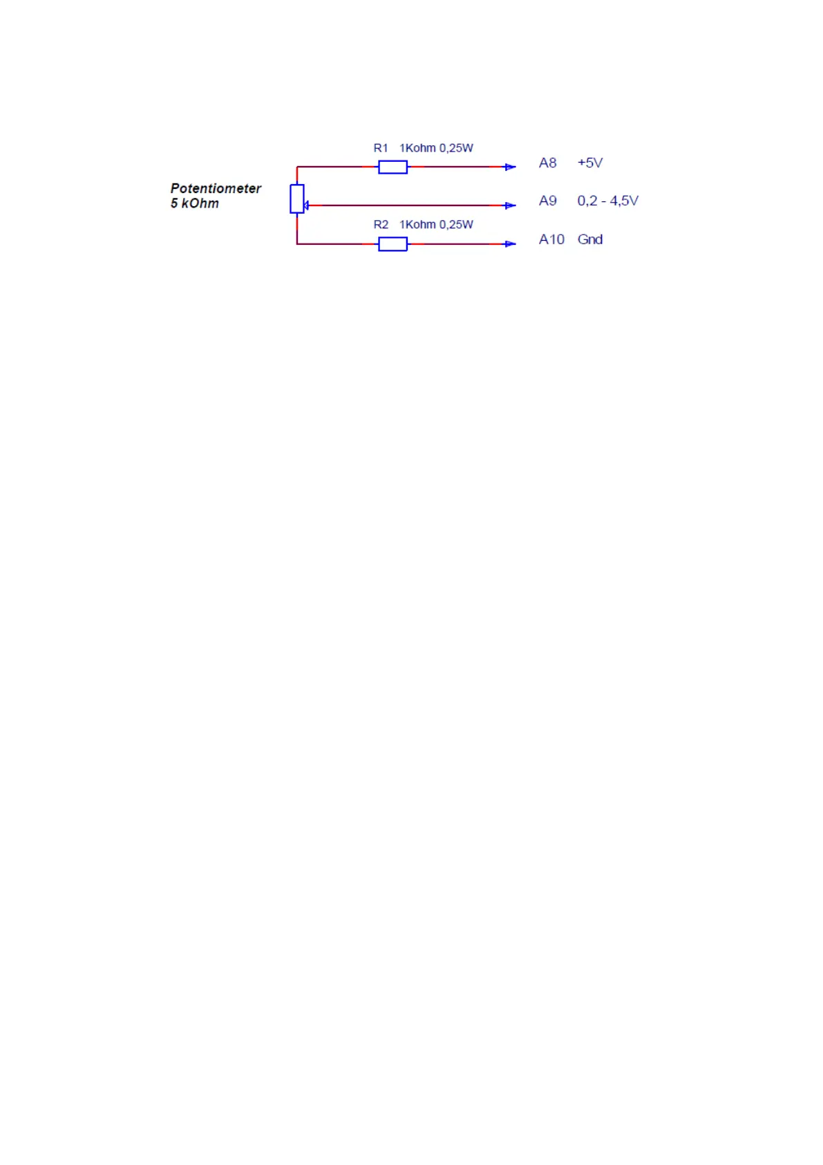 Please notice that the slider voltage has to be >0.2V and <4.8V. The resistances are placed to this mean.
