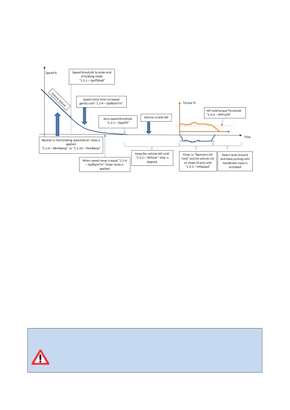 4. when speed is below “M1.2-2 Zero speed threshold ”ZSpdTh””, the vehicle is held still until “M1.5-2Hill hold