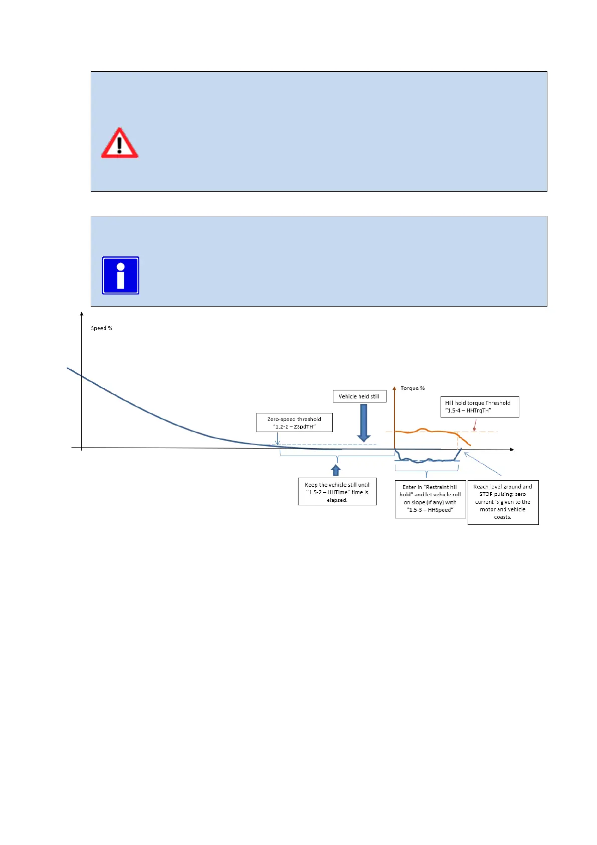 If “M3-4T Hill hold ”Off/HH/S””= 2 (Hill Hold & Stop giving power to the motor) the controller