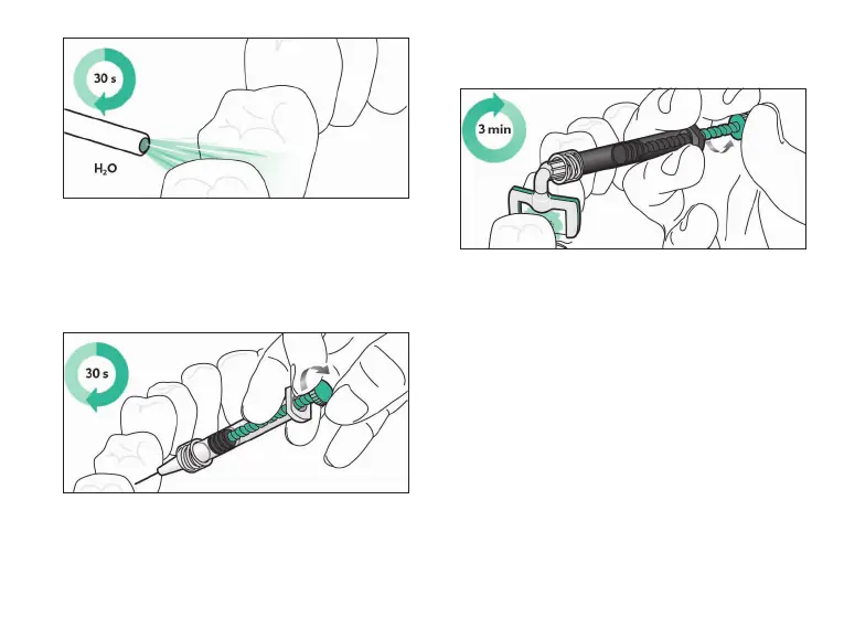 移除牙间隙中的注射头。吹净 Icon-Etch 并用