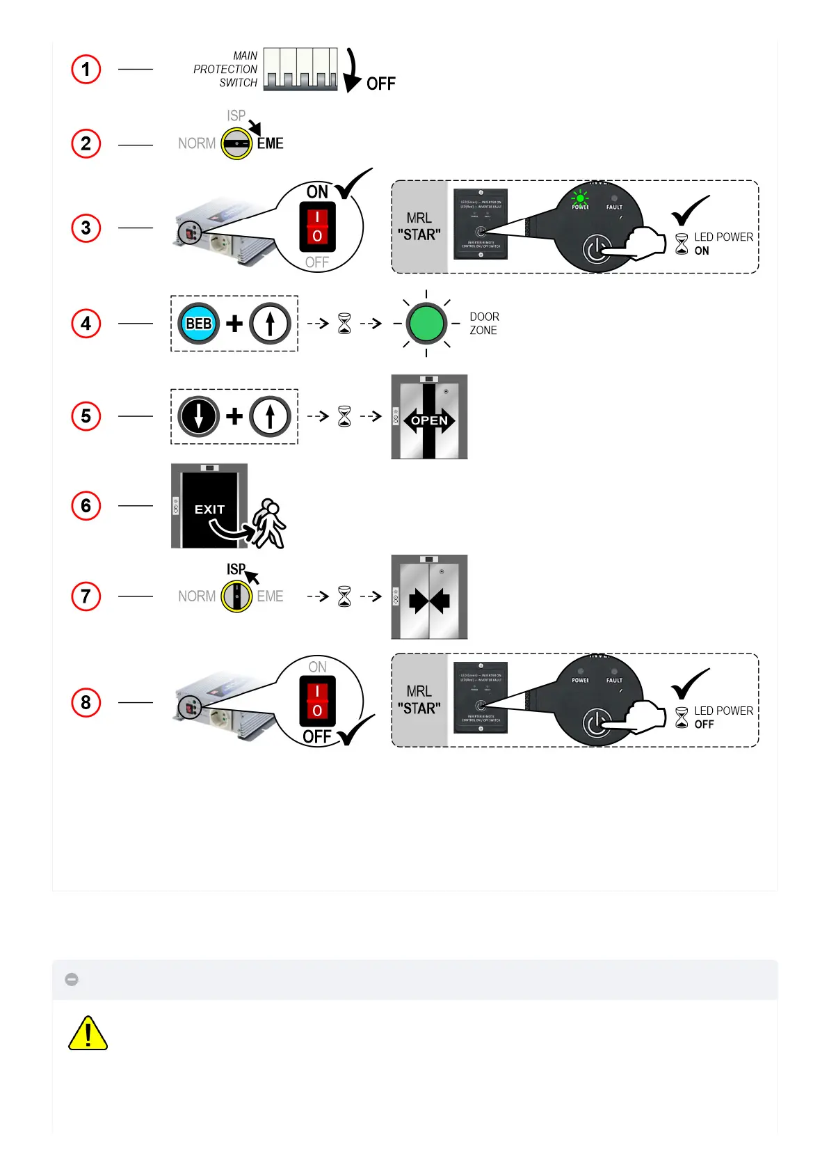 to release buttons and press them again to restart. When the Cabine reach the floor (Green light “DOOR ZONE”)