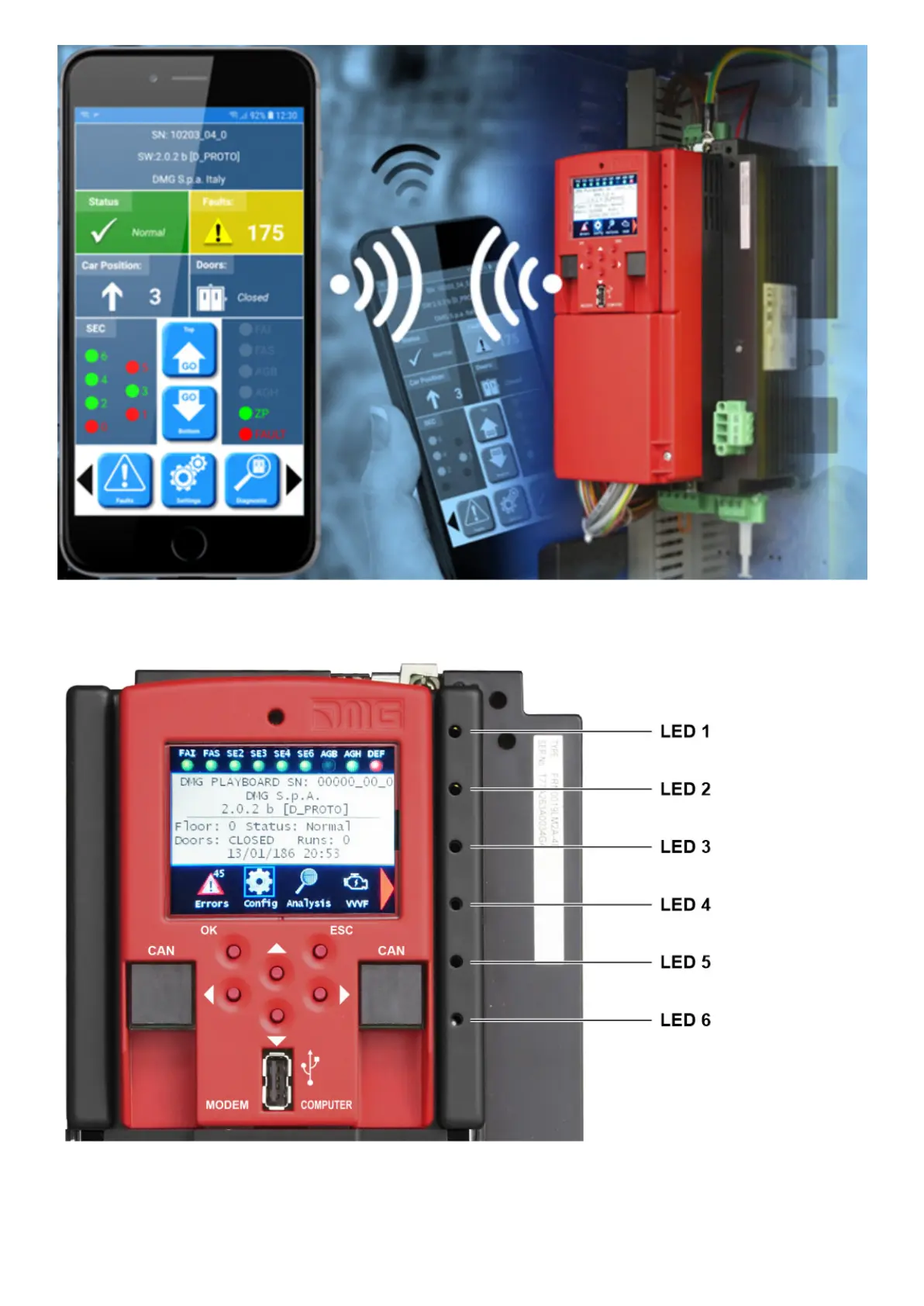LED1: (Green led) CAN Multiplex termination active: led switch off when MULX board is connected (termination