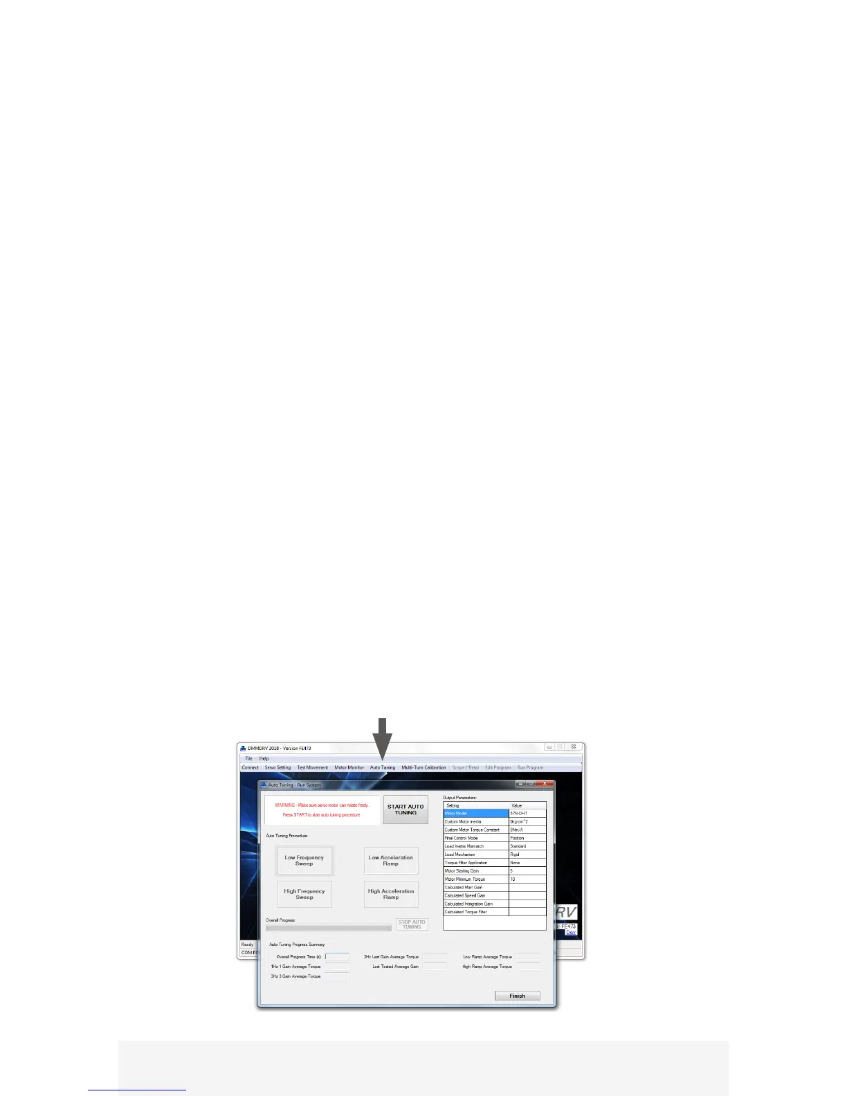 Auto tuning is most often used to automatically set the servo Gain parameters. The DM-