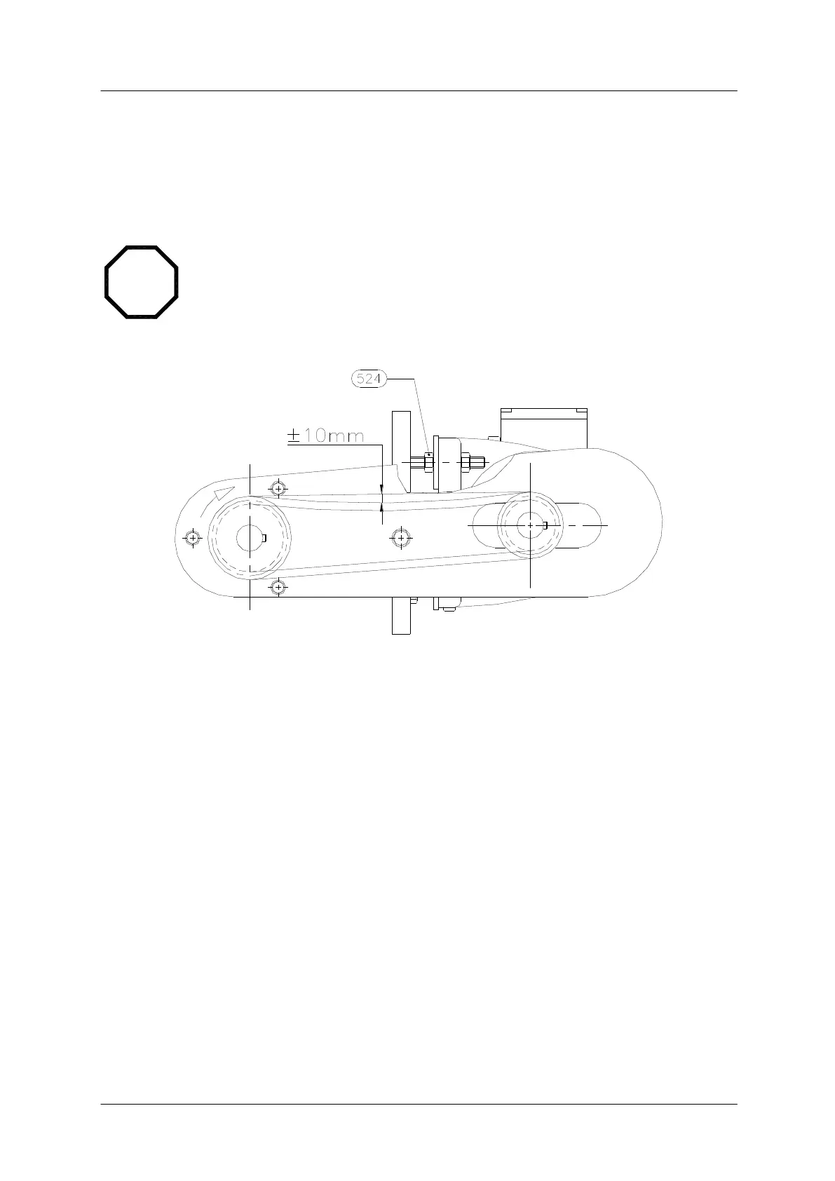 - Tighten chain by adjusting nuts (524) to give 10 mm slack at chain.