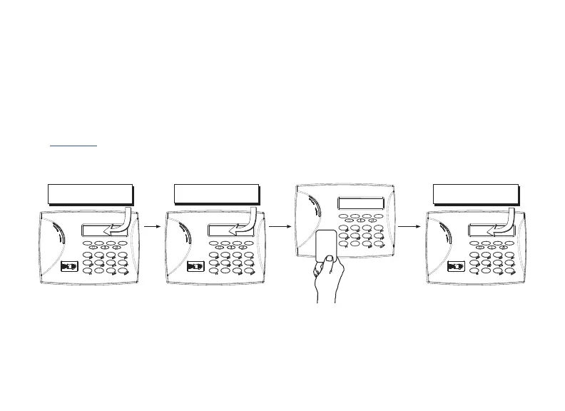 3. The keypad displays ENTER CODE: -. The user presents their card to the reader.