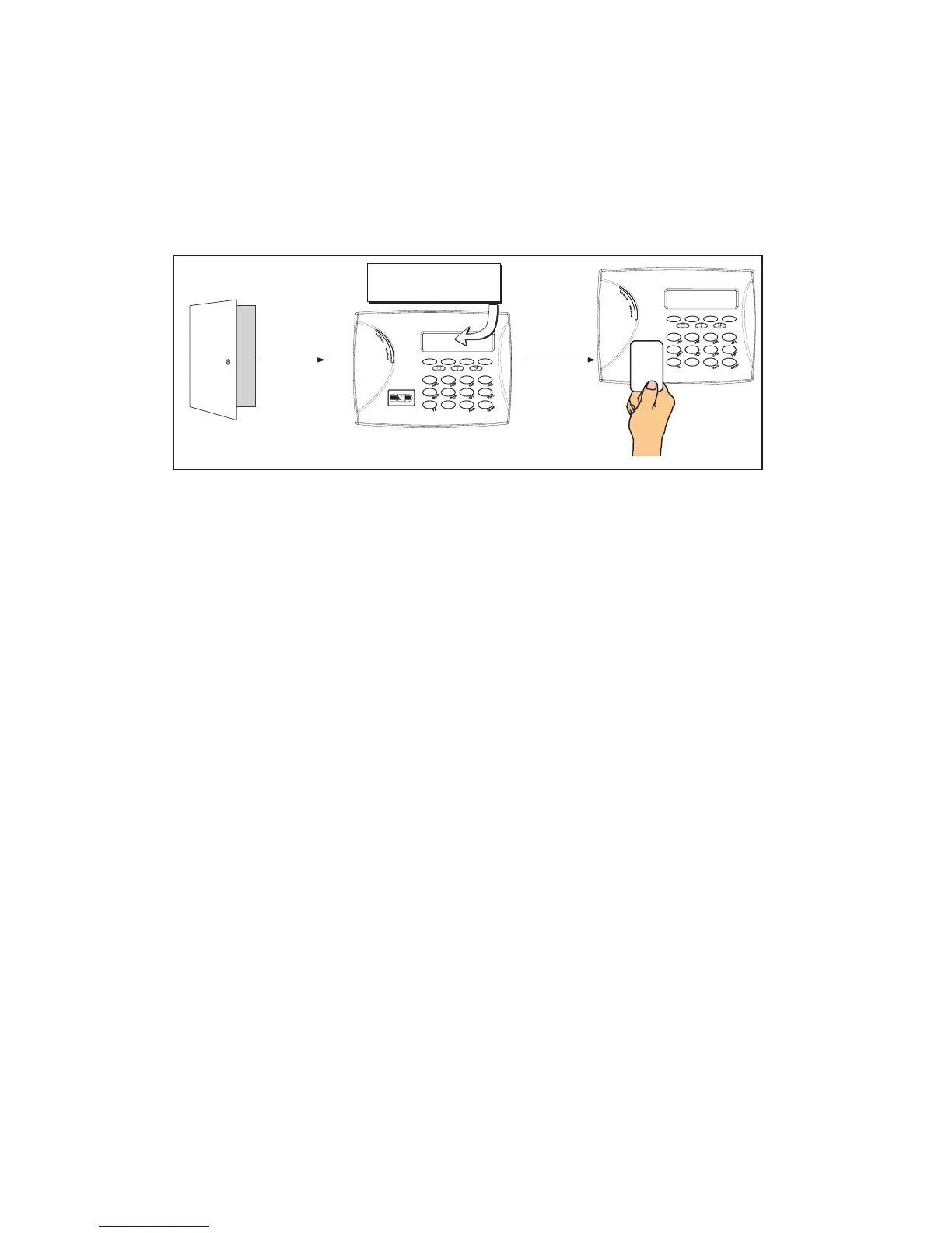 CODE: - . Present your card to the reader. Once validated, the system disarms all