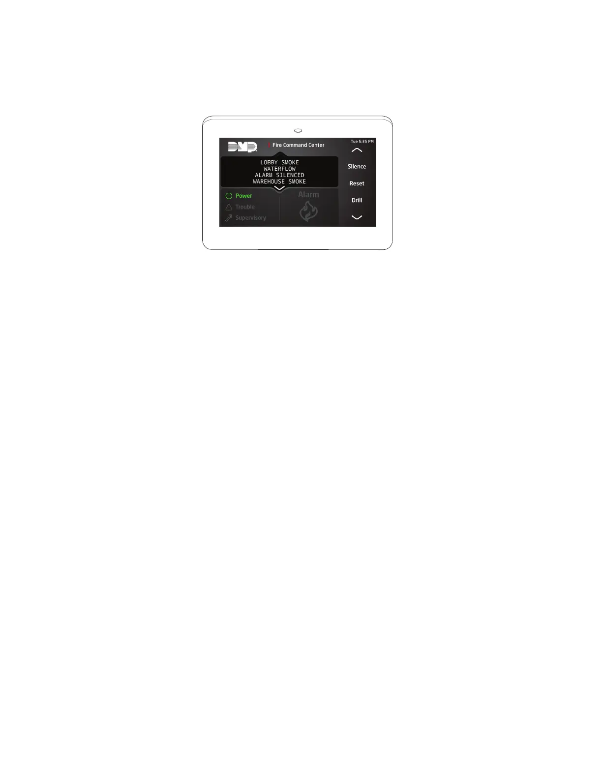 A 7830F Fire Command Keypad is factory installed on the panel enclosure door. The display and keyboard are factory