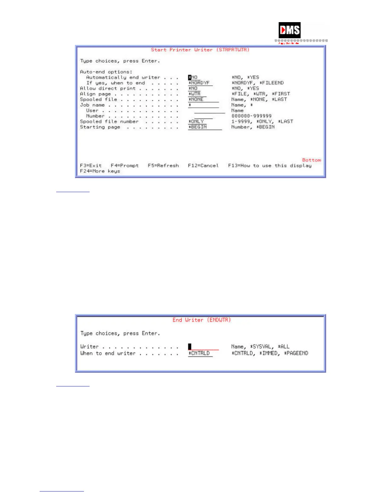 2. Type "ENDWTR xxxx" ("xxxx" is the printer name) on the command line and press