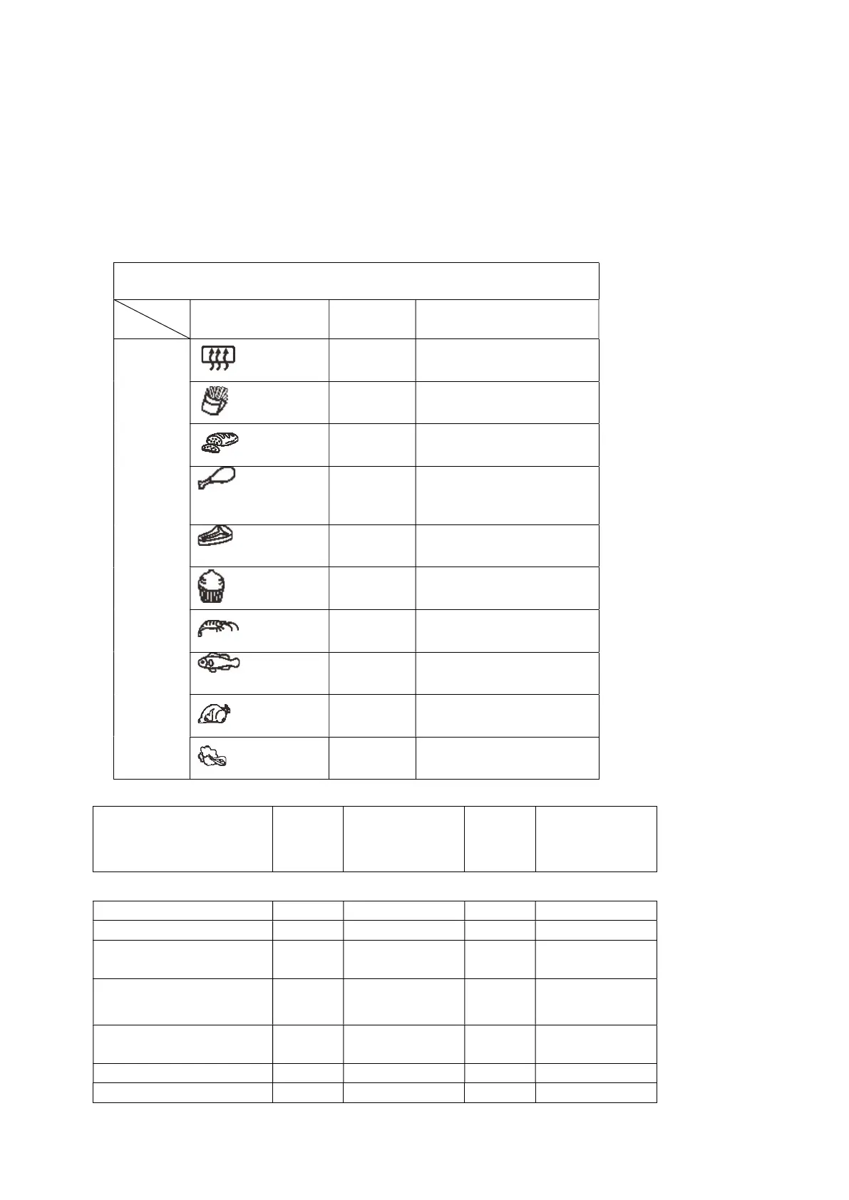 Die folgende Tabelle hilft Ihnen bei der Auswahl der Grundeinstellungen für die Zutaten.