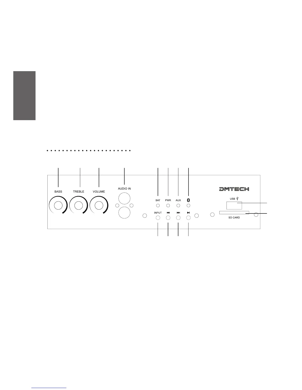 1. BASS-kontroll: Styr bassen på høyaleren.