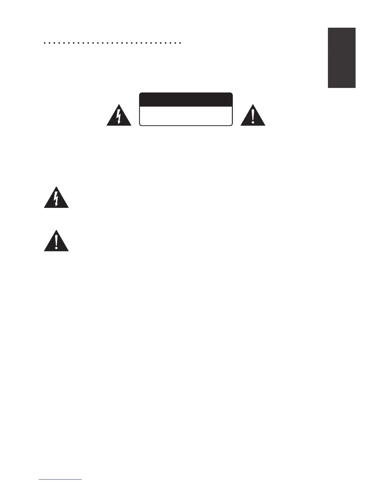 Varning: För a förhindra risk av elchock, öppna aldrig höljet (eller