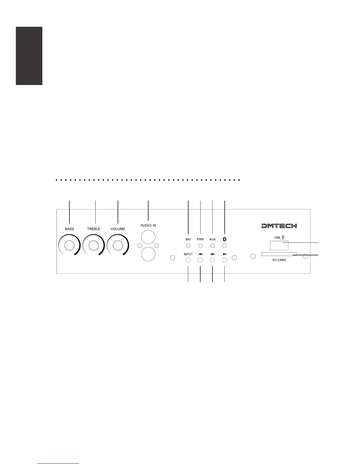 3. Huvudvolymkontroll: Justera högtalarens huvudvolym.
