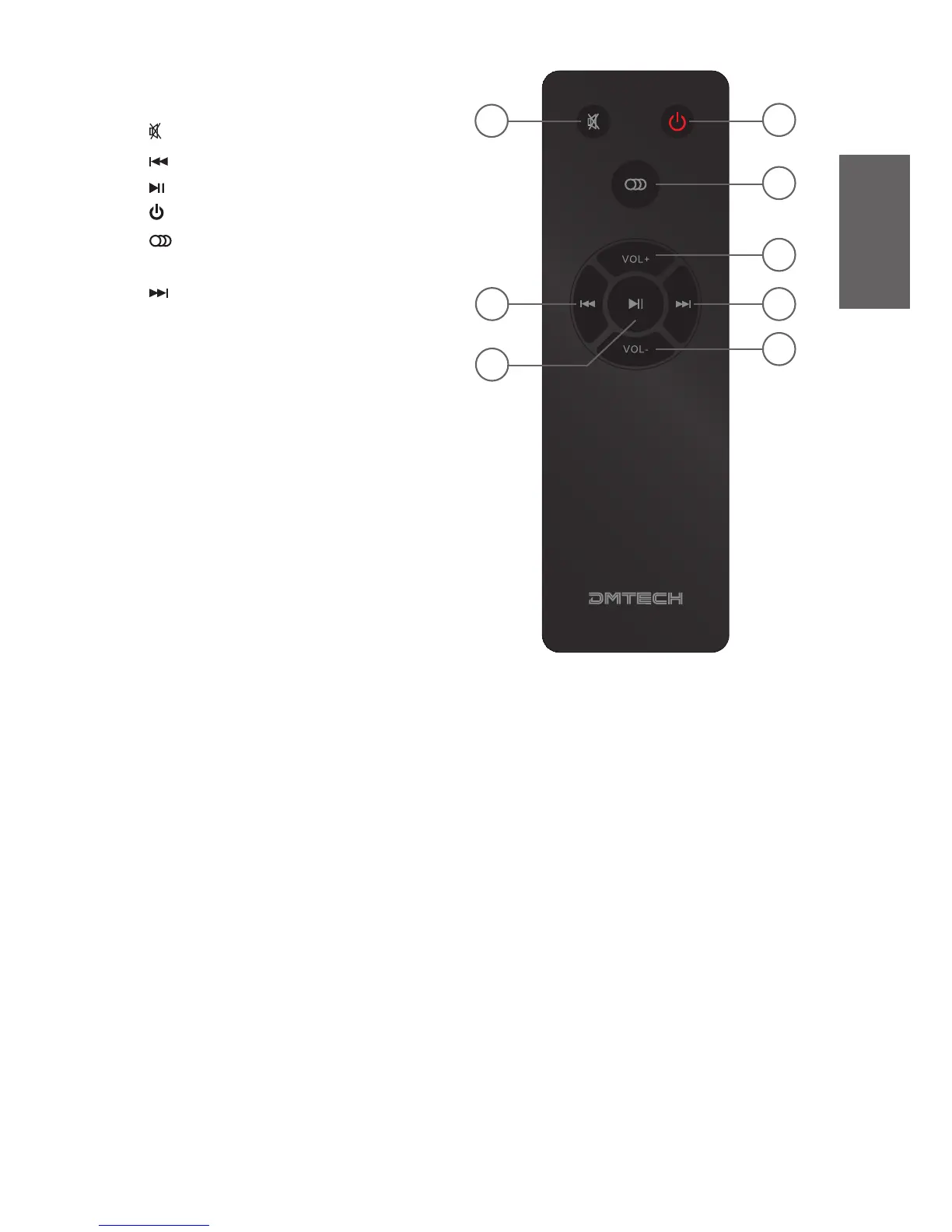 DMTech BTi80 - Remote Control Functions; Remote Control Button Mapping; Box Content List