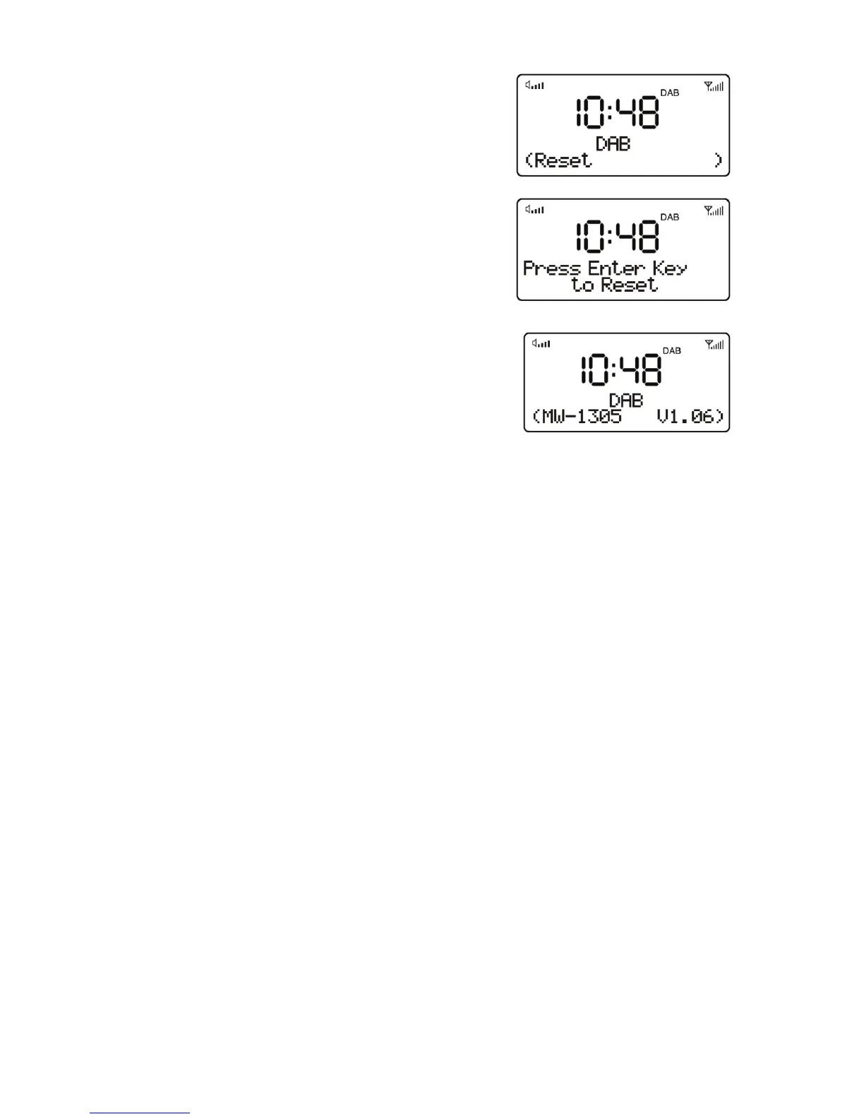 Enter Key to Reset” appear on the display.