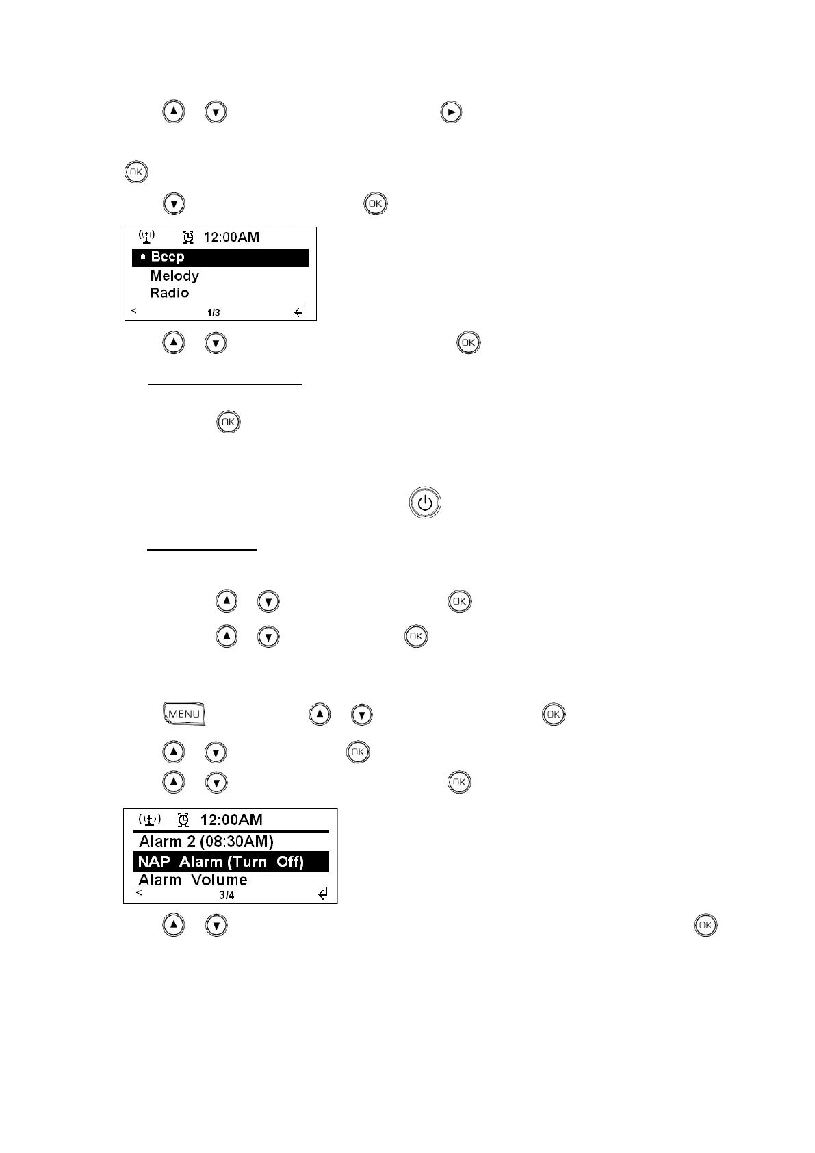 3. Press or to <NAP Alarm (Turn Off)>, press to confirm.