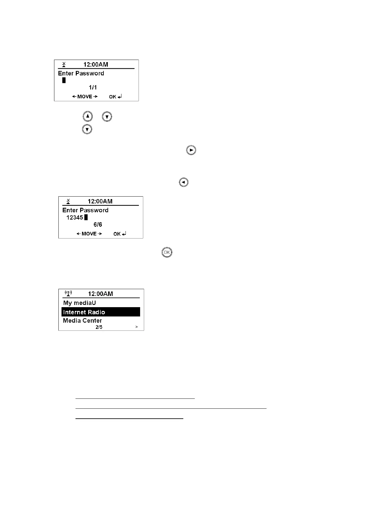 Your radio will ask you to input the WEP/WPA code and display the password entry screen.