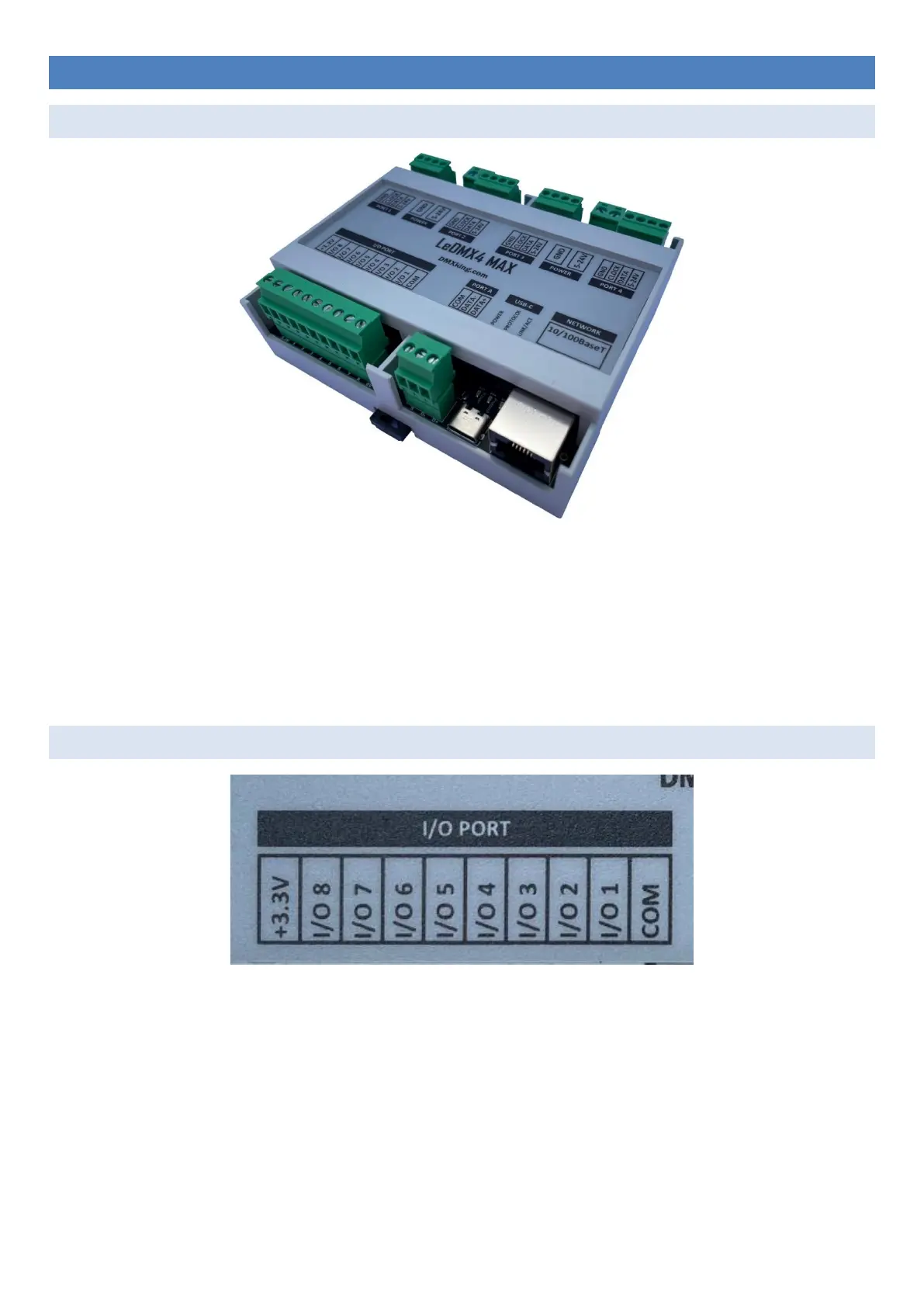 Note earlier production units have incorrect I/O Port labelling where I/O 1 – 8 are flipped 8 – 1. Above image shows the