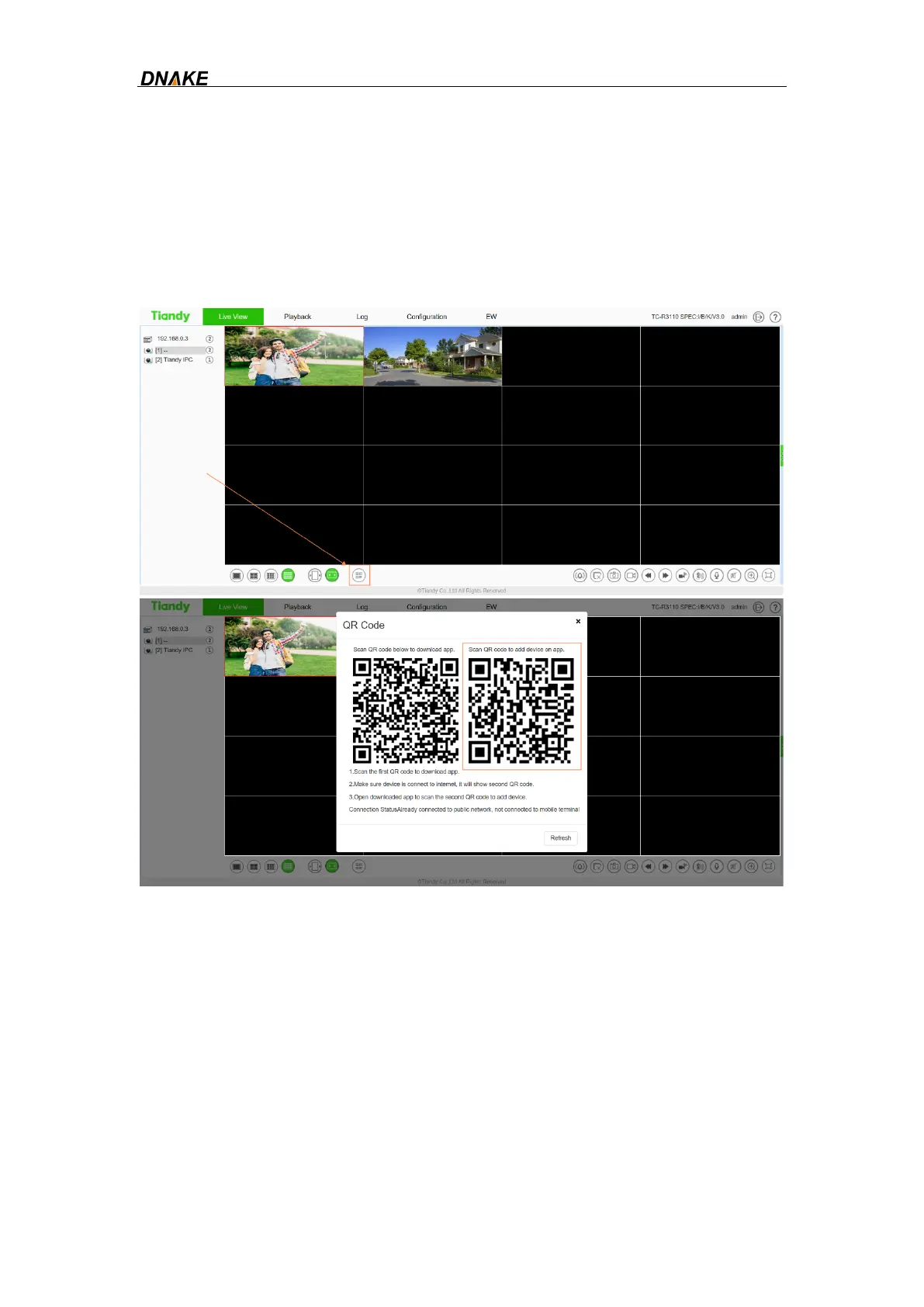 Dnake Tiandy TC-C35US - Monitor DNAKE Door Station via Tiandy EasyLife App; Add NVR to App Using QR Code