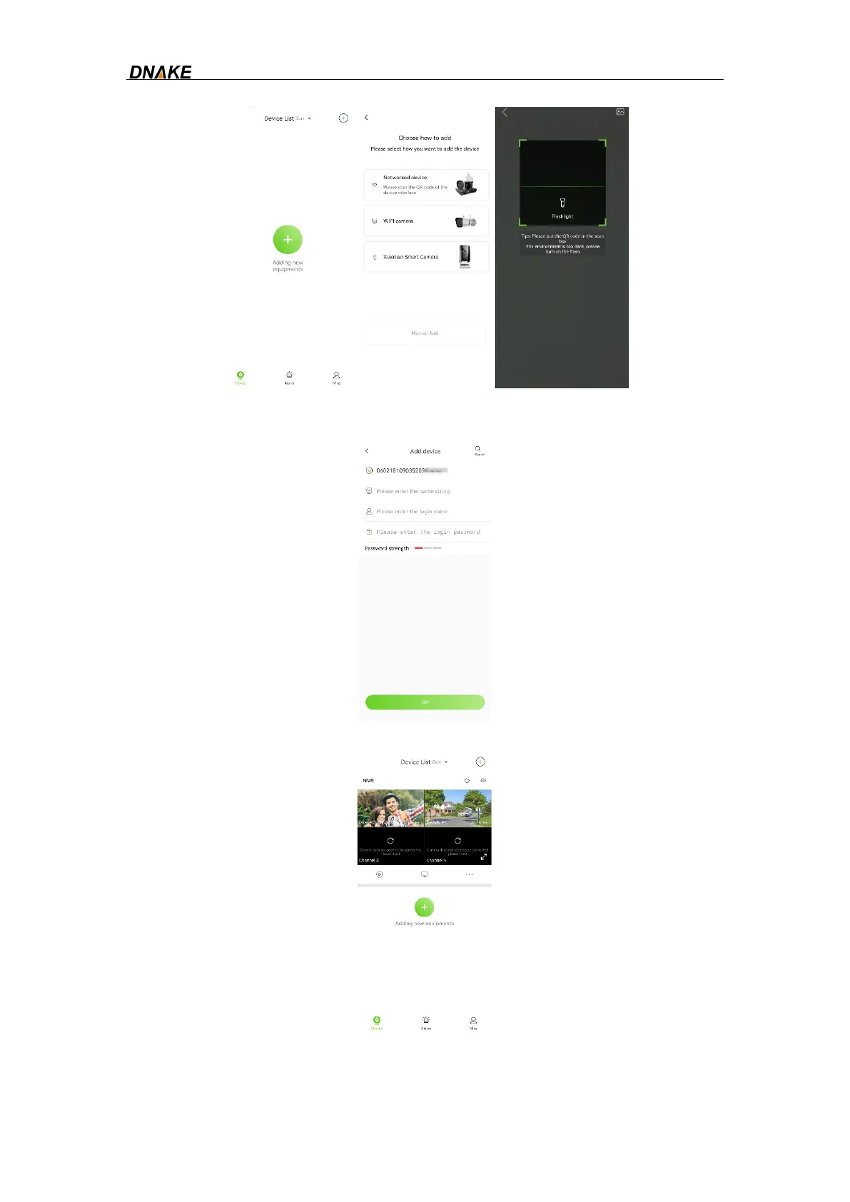 Step 3: After scanning, fill in name string, login name (Account of NVR), password