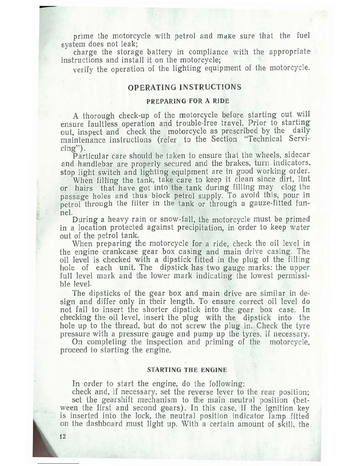 Dnepr MT10-36 - Riding Procedures and Techniques