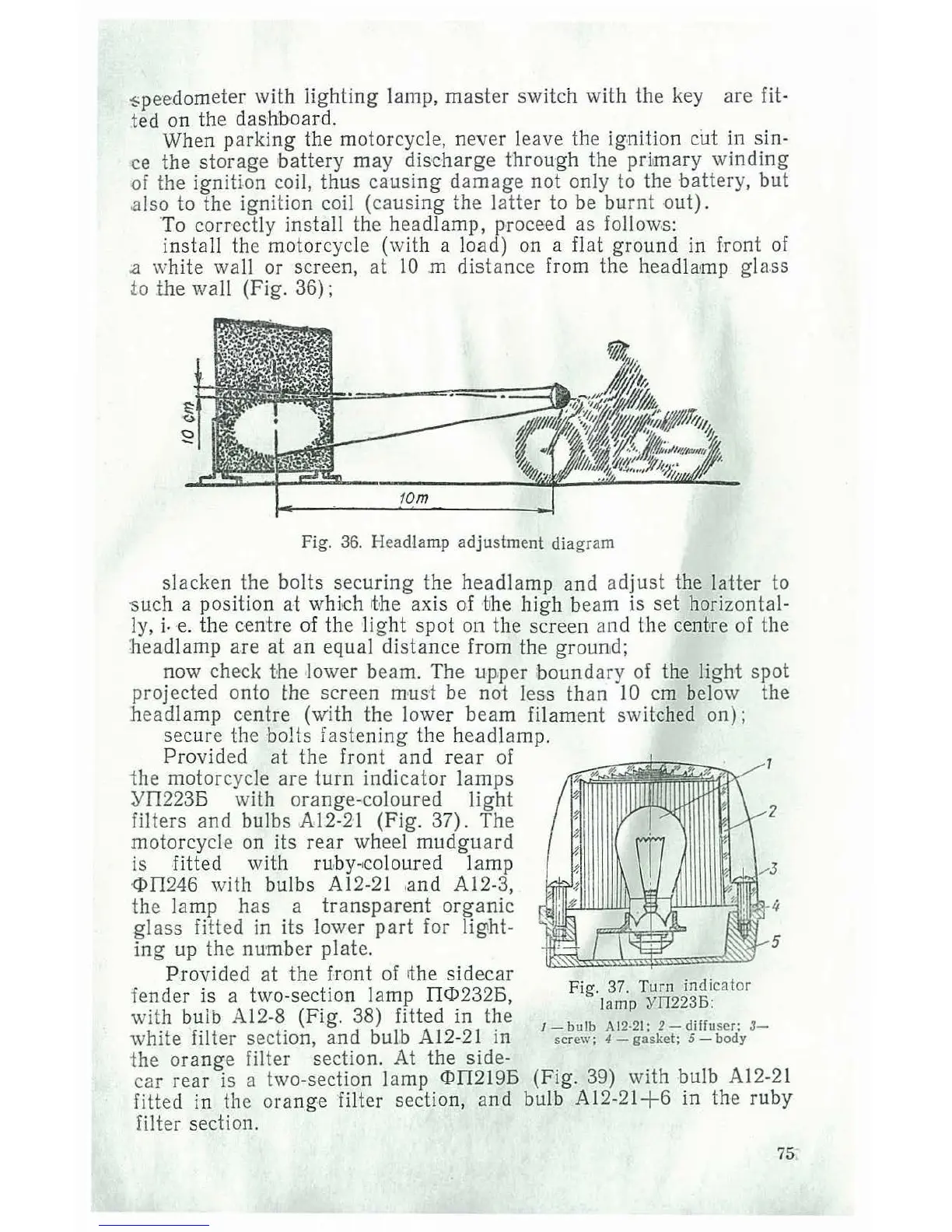 Dnepr MT10-36 - Headlamp Adjustment Diagram