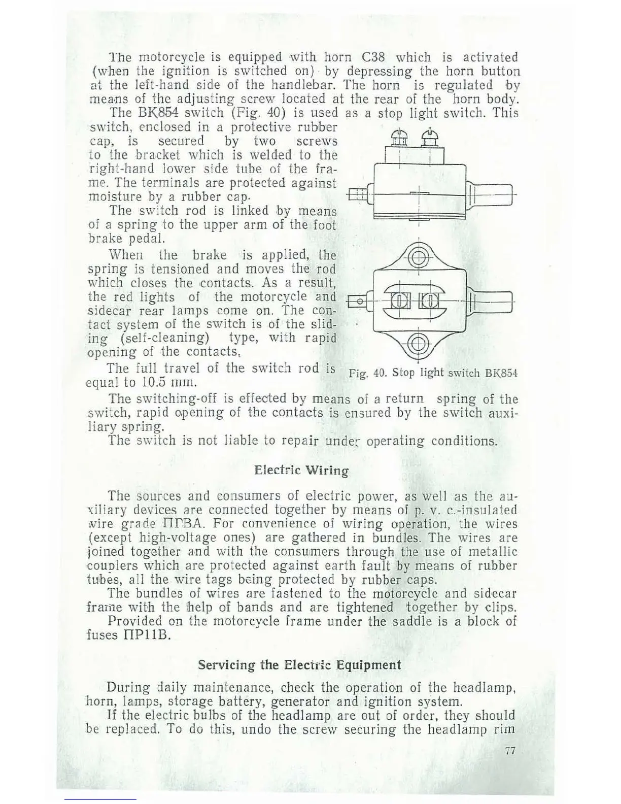 Dnepr MT10-36 - Electric Wiring; Servicing the Electric Equipment