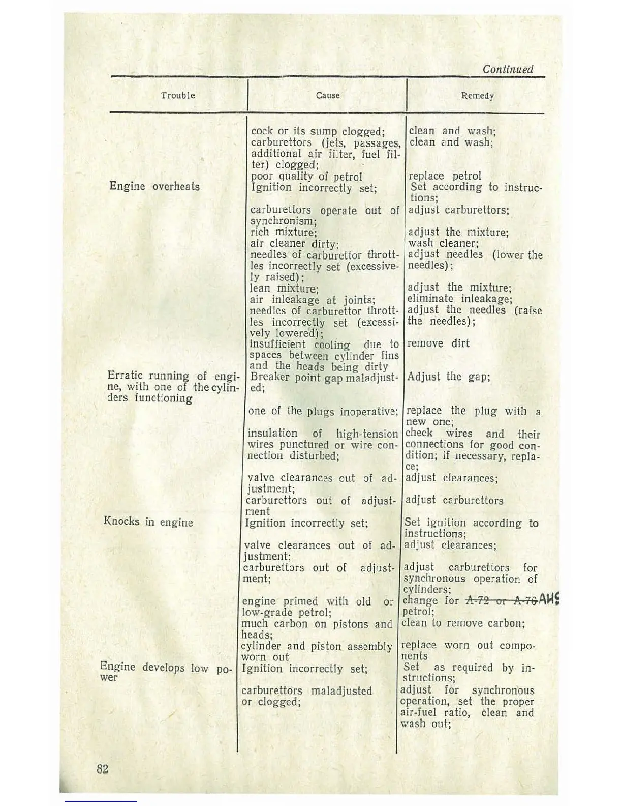 Dnepr MT10-36 - Engine Develops Low Power; Knocks in Engine; Erratic Running of the Engine with One Cylinder Functioning; Engine Overheats