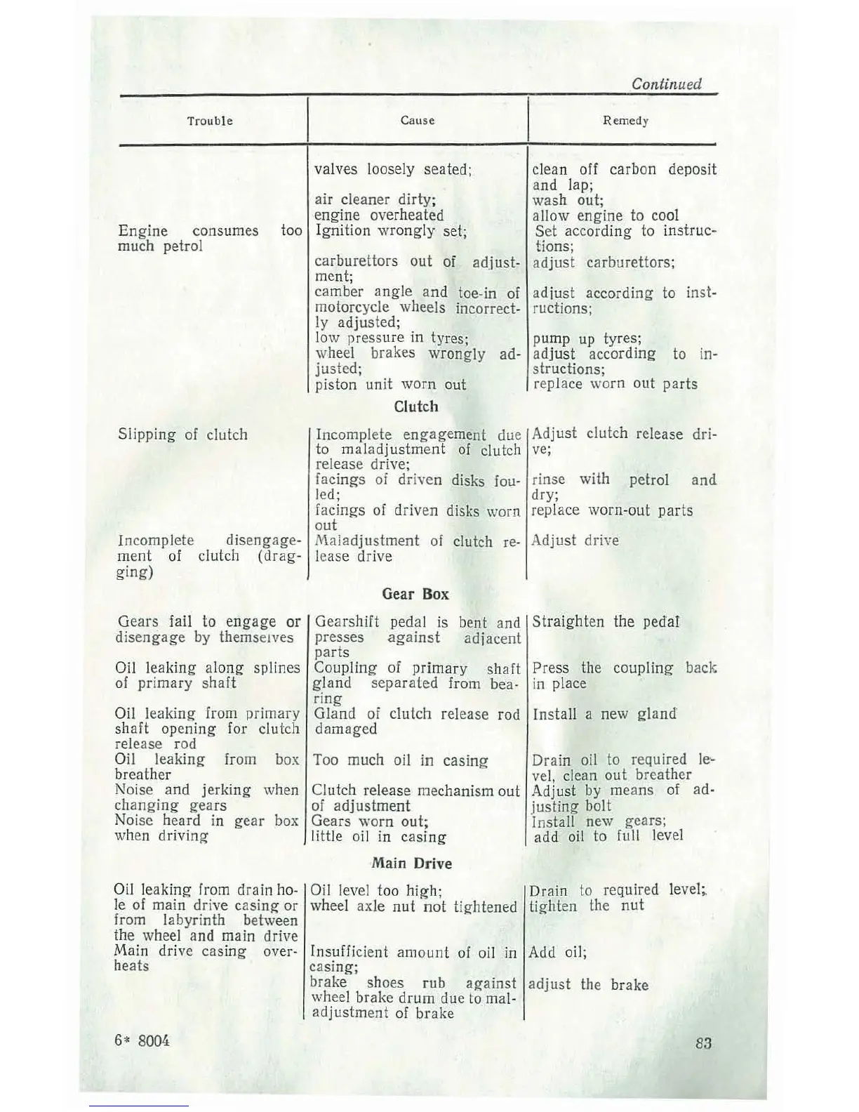 Dnepr MT10-36 - Engine Consumes too Much Petrol; Slipping of Clutch; Gear Box Troubles; Main Drive Troubles