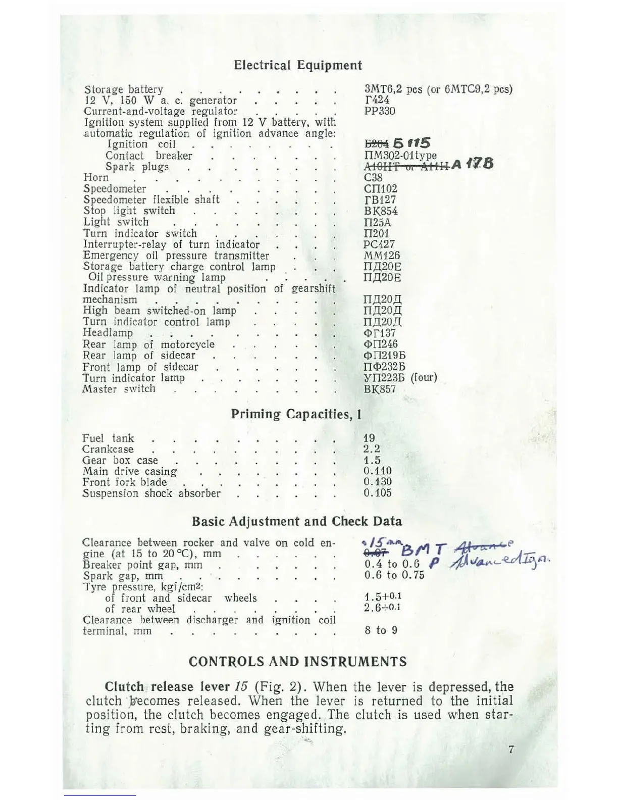 Dnepr MT10-36 - Clutch Release Lever; Controls and Instruments