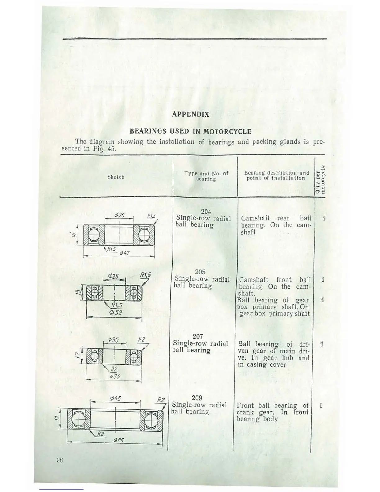 Dnepr MT10-36 - Bearings Used in the Motorcycle