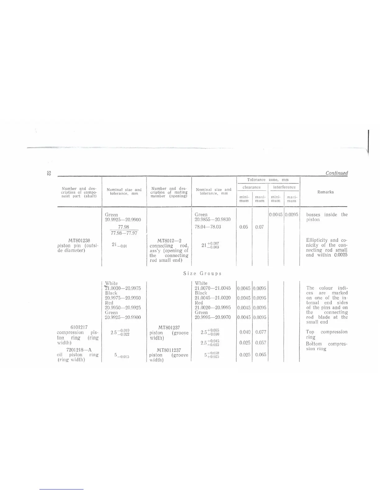 tolerance, mm